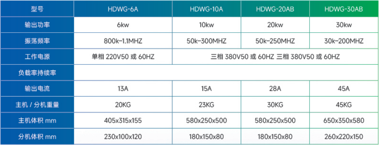 · 频率高达 100K-15MHZ 能有效地控制表面迹火深度,可完全取代电子管高频;
